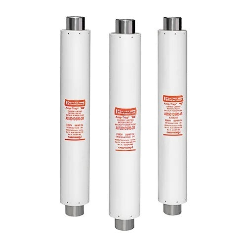 Mersen A072D1DSR0-4R - Amp-Trap® R-Rated DIN style fuses are current-limiting, high interrupting rating fuses, intended for the short circuit protection of medium voltage motors and motor controllers. This product range offers North American R-Rated performance in the IEC 282-1 DIN mounting configuration of 442mm. R-Rated fuses are applied as back up fuses that have a minimum interrupting rating, and must be coordinated with overload relays in combination motor starters. Amp-Trap R-Rated, DIN type fuses are offered in voltage ratings of 3.3kV, 5.3kV and 7.2kV in ratings from 2R to 19R. All fuses within this product group are UL component recognized.DEFINITIONS:R-Rating: R-Rated fuses are back-up fuses that operate as follows (Per ANSI C37.46-2000): An R-Rated fuse will melt in the range of 15 to 35 seconds at a value of current equal to 100 times the “R” ratingBack-up Current-Limiting Fuses: A back-up current-limiting fuse is a fuse that can interrupt any current between its rated minimum interrupting current and its maximum interrupting current. Back-up fuses are not designed or intended to open under overload conditionsContinuous Ampere Rating at 40°C: The continuous amp rating defines the thermal capability of the fuse per ANSI C37.46 and should not be the sole factor in fuse selectionSpring-Reinforced Clip MR45 & Spring Ref.# L096472Fuse-Holder: SI 24/442 Ref # K209424 In compliance with IEC 282-1, DIN standard 43625Note: Ratings above 19R may be achieved by paralleling fuses. Please consult factory for details