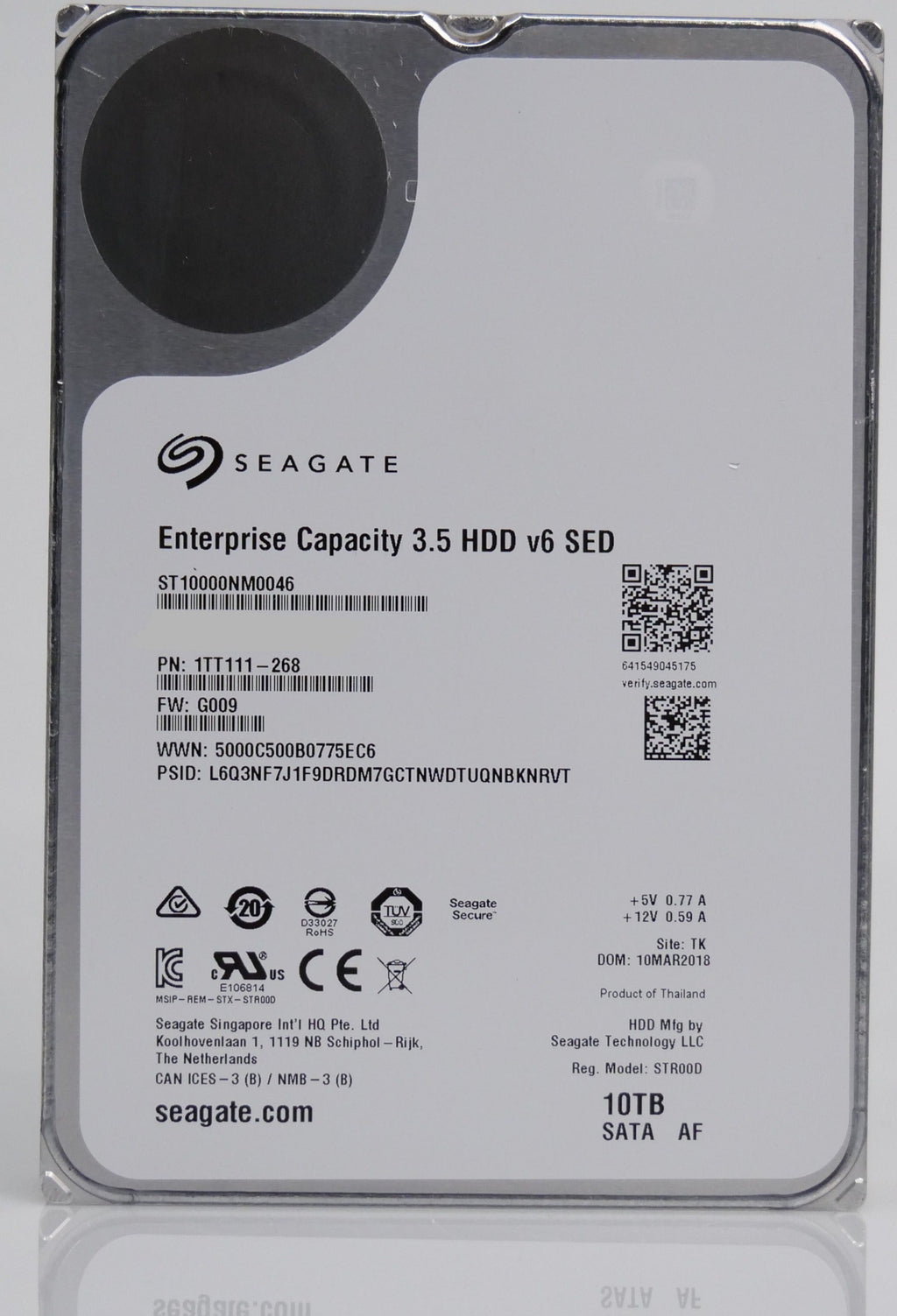 Seagate Enterprise Capacity ST10000NM0046 10TB 7.2K RPM SATA 6Gb/s 512e 3.5in Recertified Hard Drive