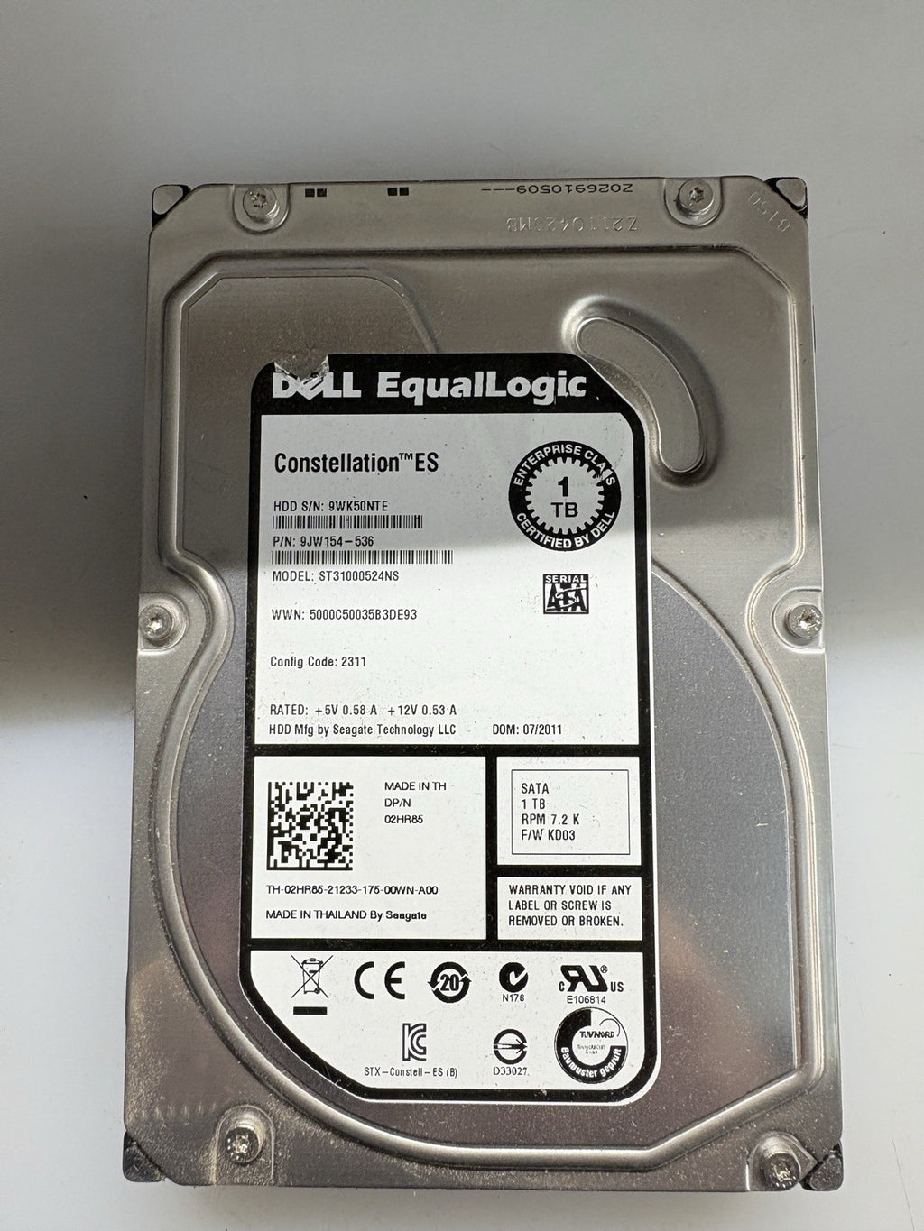 The DELL ST31000524NS 9JW154-036 ES 1TB 7.2K SATA HDD is engineered to deliver reliable and efficient storage solutions for enterprise environments. With a capacity of 1TB and a rotational speed of 7,200 RPM, this hard drive provides a balanced combination of storage space and performance, making it suitable for a wide range of business applications. Its SATA interface ensures compatibility with numerous server and workstation configurations, facilitating seamless integration into existing IT infrastructures.