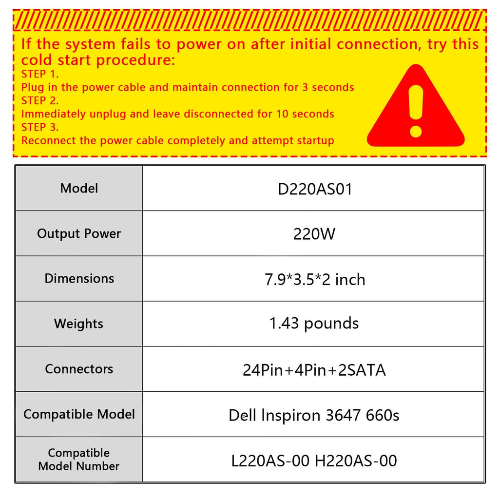 220W Power Supply Compatible with Dell Inspiron 3647 660s Replacement for Acer X1420 X3400 eMachines Gateway Series Delta DPS-220UB A Liteon H220AS-00 D220ES-01 L220AS-00 PS-5221-03DF R82H5 R82HS