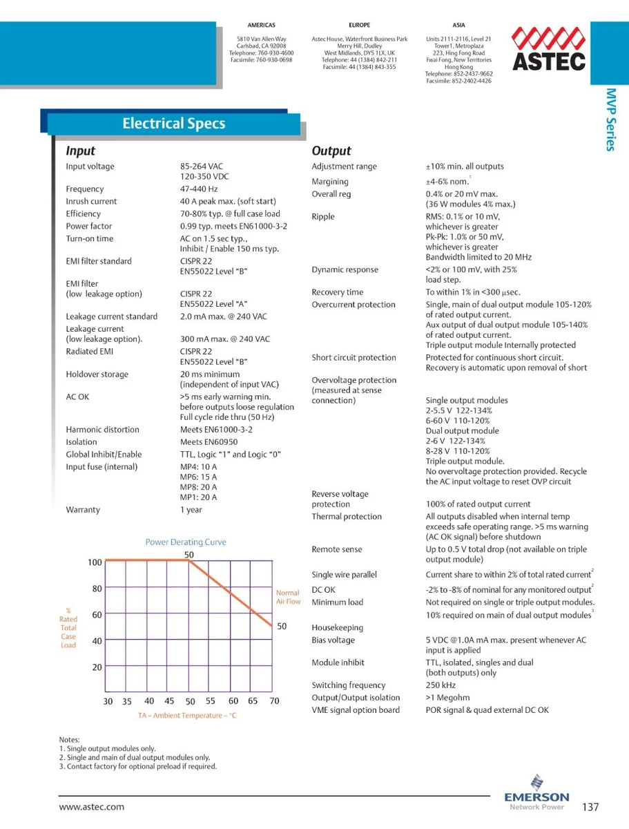 Fonte de alimentação chaveada modular Astec Emerson MVP Series MP6-3L-0M 600W 12V 50A