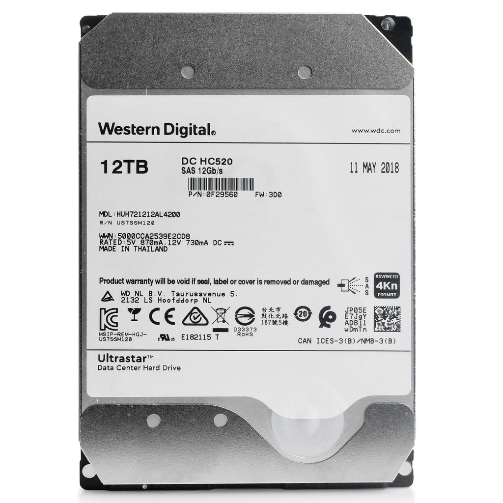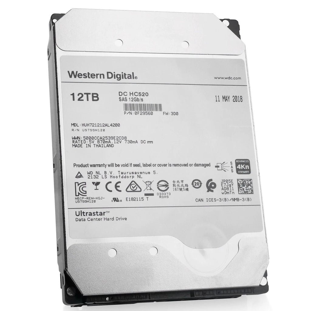 WD Ultrastar HC520 12TB HUH721212AL4200 0F29560 7.2K RPM SAS 12Gb/s 4Kn 3.5" HDD