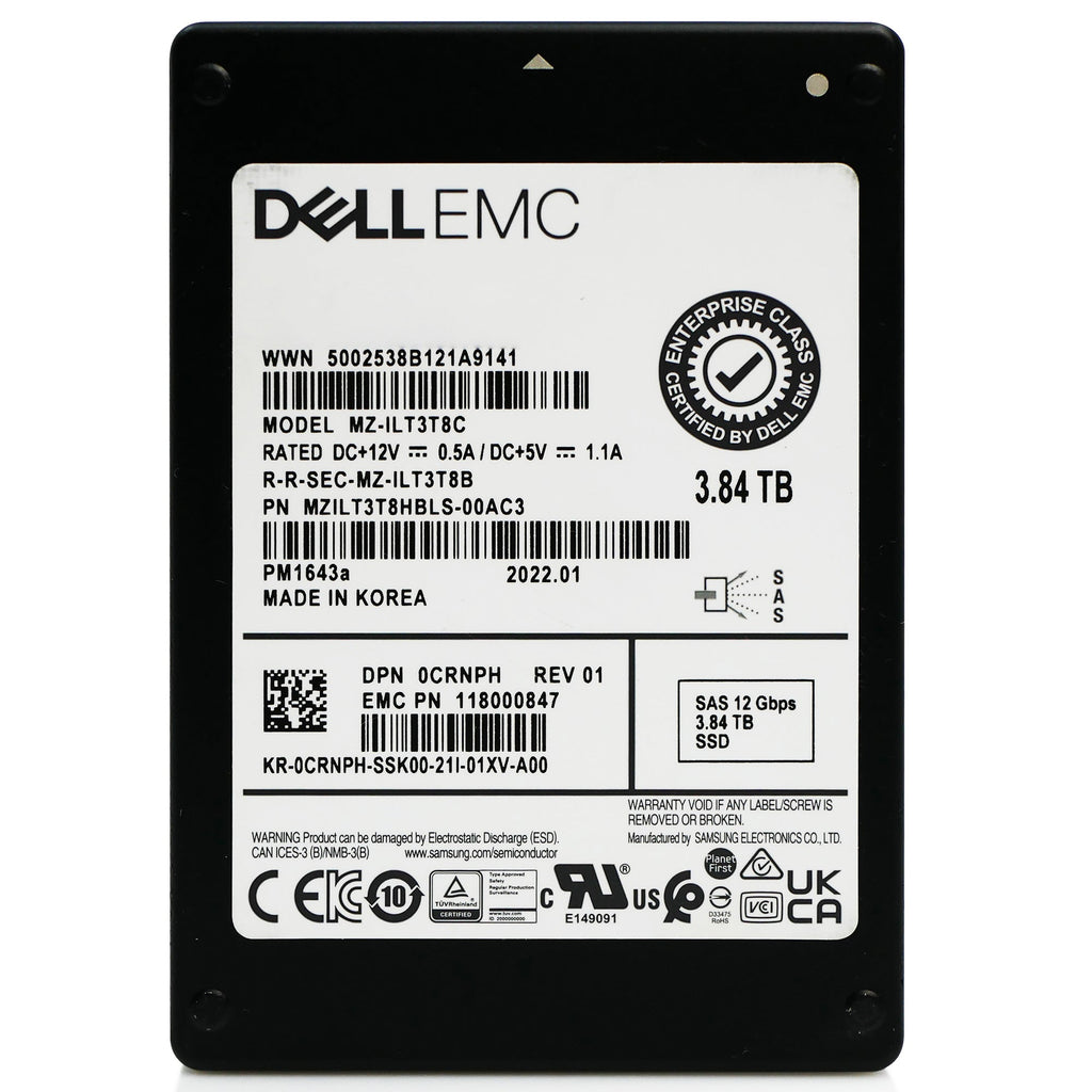 Dell/Samsung PM1643a MZILT3T8HBLS 3.84TB 1 DWPD SAS 12Gb/s 2.5in Refurbished SSD